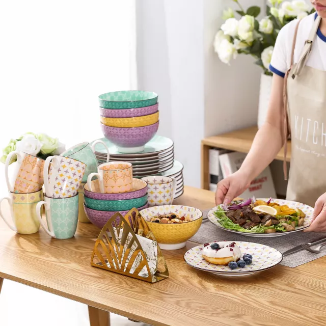 This dinnerware set is ideal for anyone who wants to elevate their everyday dining. The colorful designs bring warmth and creativity to casual meals and festive dinners alike. Its classic square shape and smooth porcelain finish blend effortlessly with any kitchen décor, from modern minimalism to cozy country style.