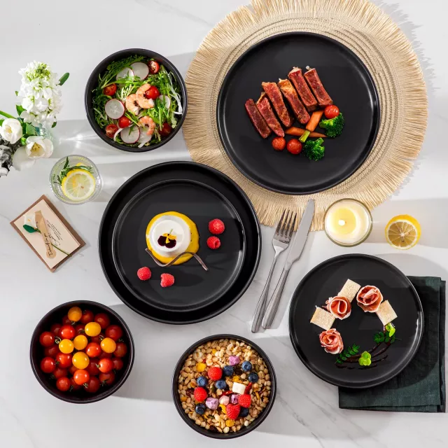 Transform every meal into a stylish dining experience with this stunning Black Reactive Glaze Dinnerware Set. Designed for both everyday use and special gatherings, this set effortlessly combines beauty, durability, and practicality. Each piece features a unique reactive glaze finish—an artistic technique that creates mesmerizing, one-of-a-kind color variations, ensuring no two pieces are ever exactly alike. Perfect for adding a touch of sophistication to any table setting.