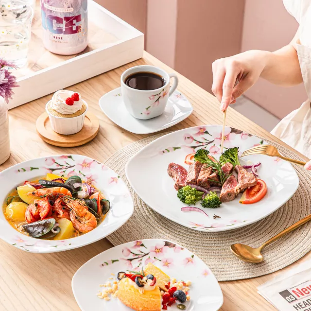 Whether you’re hosting a festive dinner, a cozy family meal, or an afternoon tea, this porcelain dinnerware set transforms every gathering into a delightful experience. Its refined floral design complements both modern and classic interiors, effortlessly blending beauty and practicality. The coupe-shaped plates and smooth-glazed surfaces not only enhance presentation but are also comfortable to handle and easy to clean.