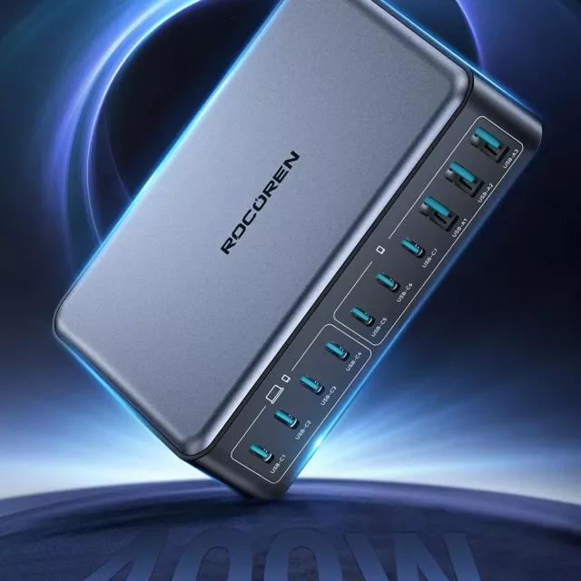 Meet the ultimate charging hub designed for your modern lifestyle — a 400W 10-in-1 GaN Desktop Fast Charger built to power everything from your smartphone to your laptop, all at once. With a total of seven USB-C ports and three USB-A ports, this compact energy fortress delivers lightning-fast, efficient charging for multiple devices simultaneously. Whether you’re at home, in the office, or on the go, this powerhouse keeps all your tech fully charged and ready.