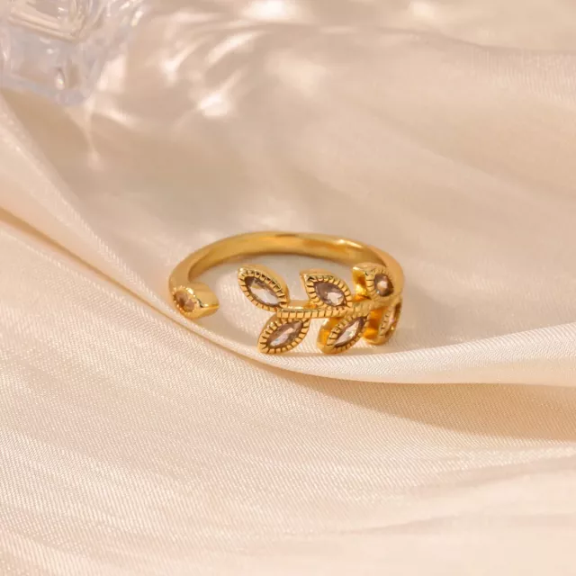 Make a statement at any special occasion with this stunning Crystal Geometric Vintage Leaf Ring, designed to capture the essence of sophistication and charm. Crafted with precision, this exquisite piece features intricate 18K gold plating and sparkling zircon crystals, creating a timeless accessory that complements both casual and formal attire. Its unique leaf design adds a natural yet luxurious touch, making it the perfect jewelry choice for women who appreciate elegance and style.