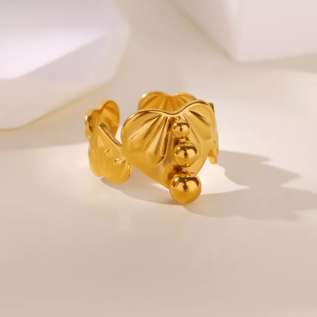 Gold Geometric Heart Bead Ring for Women
