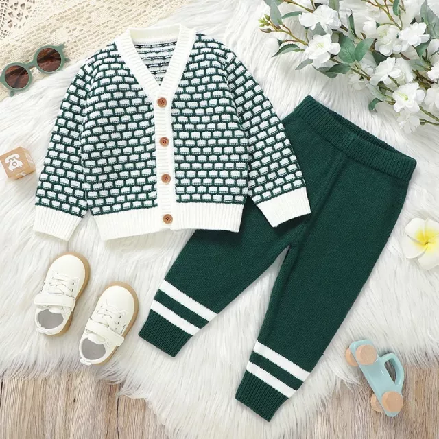 Made from premium acrylic yarn, this outfit offers lightweight warmth and breathability. The single-breasted cardigan features an easy button closure for effortless dressing, while the cozy trousers allow room for movement and play. The classic plaid knit pattern and neutral tones make it perfect for both boys and girls, creating a sweet, picture-ready look for family outings, playdates, or cozy days at home.