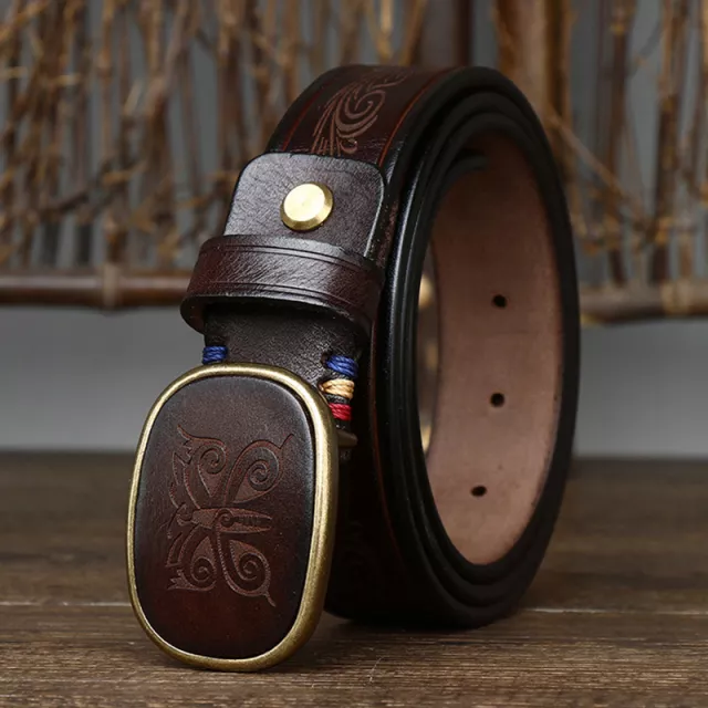 Men’s Genuine Cowhide Leather Belt with Smooth Copper Buckle