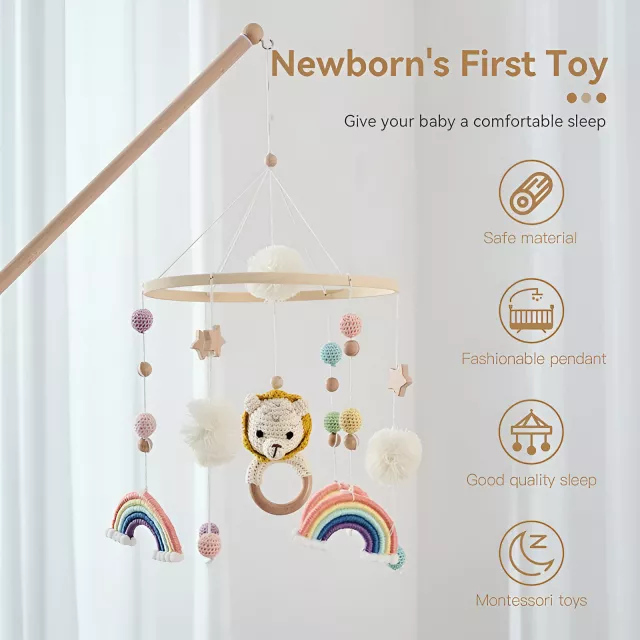 Transform your nursery into a magical space with the Montessori Animal Rainbow Baby Crib Bell. This enchanting mobile features a dreamy gradient rainbow ring adorned with charming wooden animals and gentle ringing bells. Each piece is thoughtfully designed to spark curiosity, engage your baby’s senses, and create a peaceful, joyful atmosphere. Perfect for stimulating early development through sight and sound, it’s a delightful addition to any modern nursery decor.