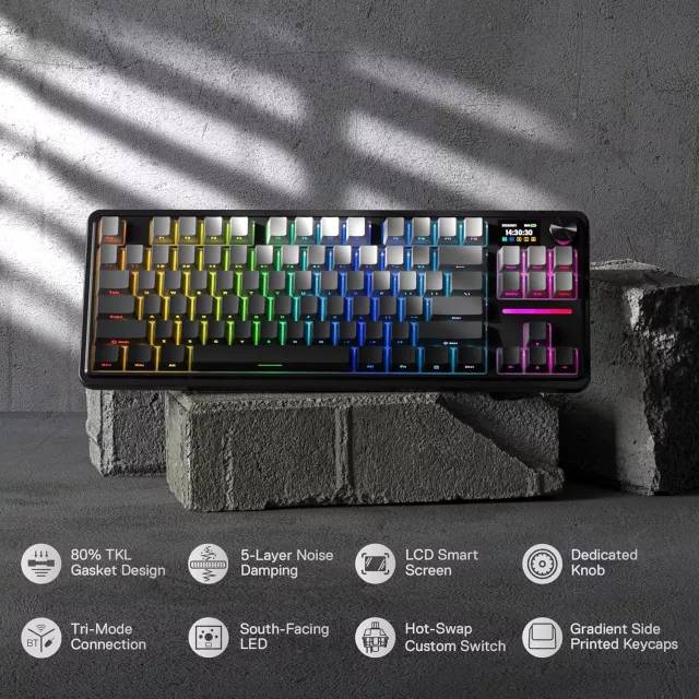 RGB Gasket Mechanical Gaming Keyboard with Smart Screen & Knob – 80% Layout