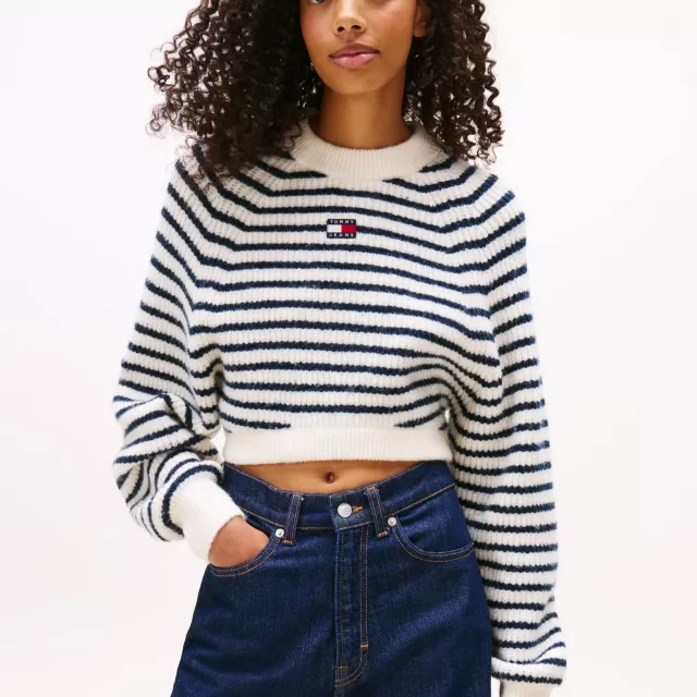 Wrap yourself in timeless style with the Tommy Hilfiger Jeans Women’s Striped White Knit Sweater. Designed for comfort and elegance, this beautiful knitwear piece brings a modern twist to classic fashion. With its clean white base and subtle striped pattern, it delivers effortless sophistication that complements any wardrobe. Whether you’re heading out for a casual coffee date or layering up for a brisk evening walk, this sweater is your go-to for the fall and winter seasons.