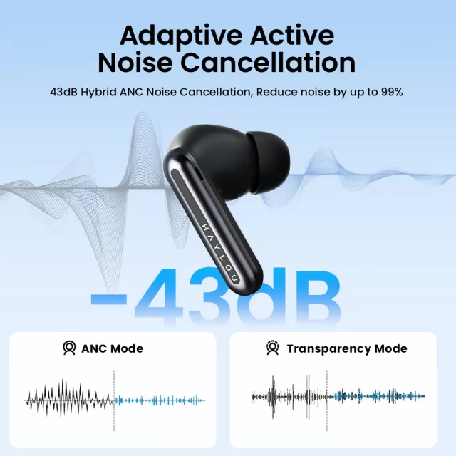 • Adaptive 43dB Noise Cancellation – Blocks out unwanted noise anywhere you go.