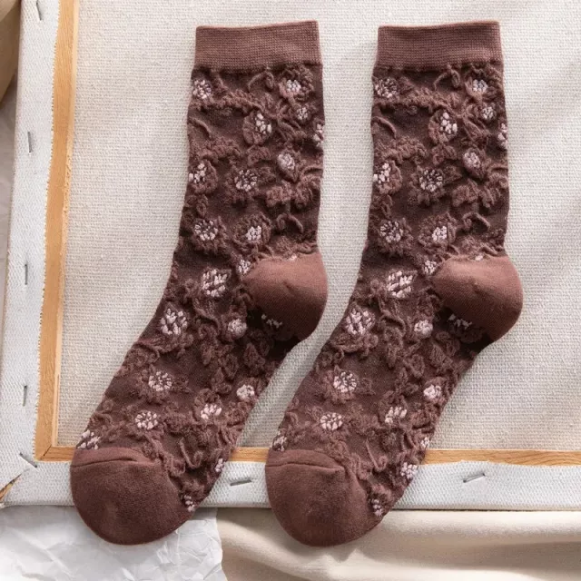 These mid-tube socks are made with precision knitting for lasting softness and durability. Their elastic fit ensures they stay comfortably in place without slipping or feeling tight. The delicate 3D embroidery creates a stunning, textured floral pattern that stands out beautifully with boots, sneakers, or even loungewear. Whether you’re relaxing at home, heading to work, or out for a winter walk, these socks will keep your feet warm and your style on point.